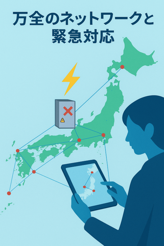 万が一の緊急時にも、全国の拠点ネットワークを活かし、迅速な対応で安心をお届けします。